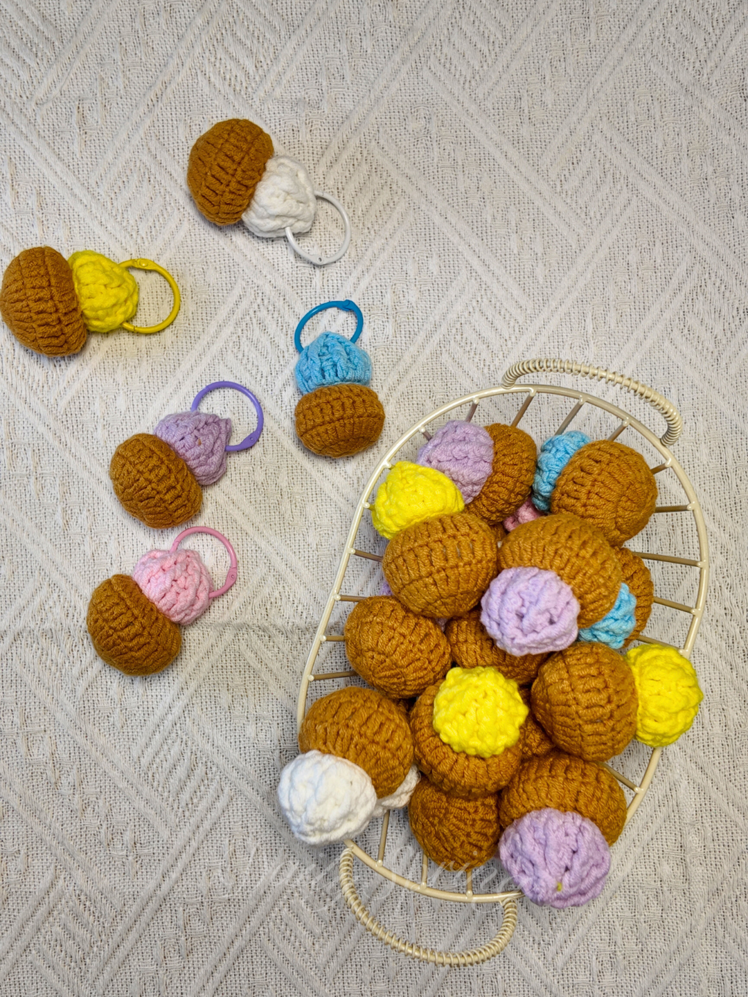 Relive childhood memories with this adorable crocheted gem biscuit keychain, inspired by the beloved colorful cookies that bring joy to every Singaporean household. Each stitch captures the playful dotted "gems" and buttery golden base of this classic treat, making it a charming tribute to local flavors.