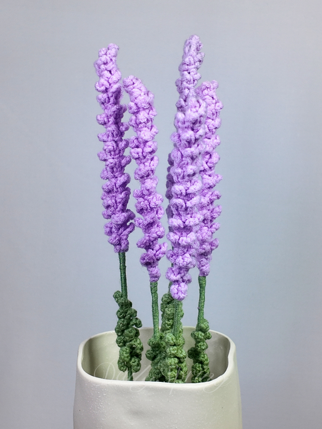 Handmade crochet lavender stems ($4 each) – a little bundle of calm that never wilts!