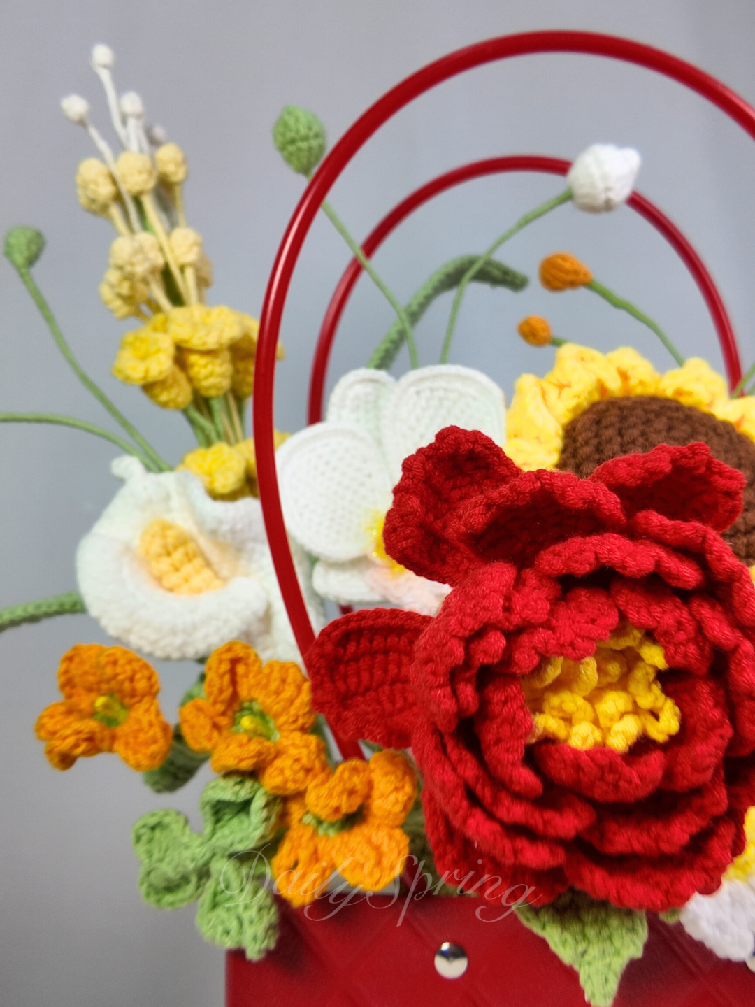 This isn’t just a bouquet—it’s a hug in floral form. Nestled in a bold red leather-look bag, it overflows with nature’s most joyful messengers: bold red peonies (for enduring love), cheerful yellow snapdragons (playful energy), sunny baby sunflowers (pure adoration), elegant white orchids (cherished devotion), and wild orange hibiscus (fiery spirit). Even the monstera leaf whispers "grow with me," while white tulips and daisies promise fresh beginnings.
