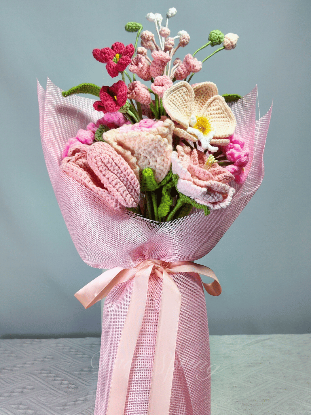 Pink Garden Mix unites the wild elegance of a cottage garden with a dreamy cascade of pink hues. This medium arrangement (45 × 30 cm) balances lush romance with playful charm — where velvety petals dance with delicate textures.